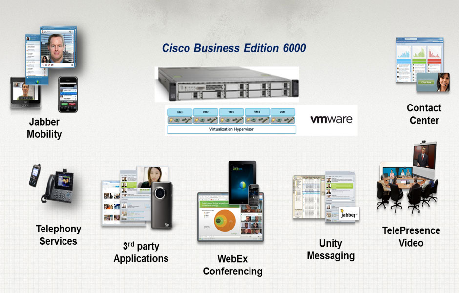 Cisco Business Edition 6000(BE6000)基于虛擬化技術(shù),它將多個協(xié)作應(yīng)用程序結(jié)合到一個高可用性的解決方案中,其隨企業(yè)需要不斷改善的活架構(gòu)可幫助中型企業(yè)降低總擁有成本(TCO)并提高投資回報(ROI)。