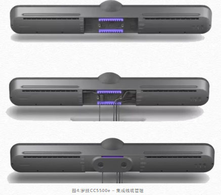 與最近評估過的其他羅技產品(羅技TP100和羅技Swytch音視頻切換器)一樣,CC5500e的線纜管理系統可隱藏線纜連接,實現應力消除和線纜固定,防止因外界干擾導致的線纜松動,讓安裝更加整潔穩定。