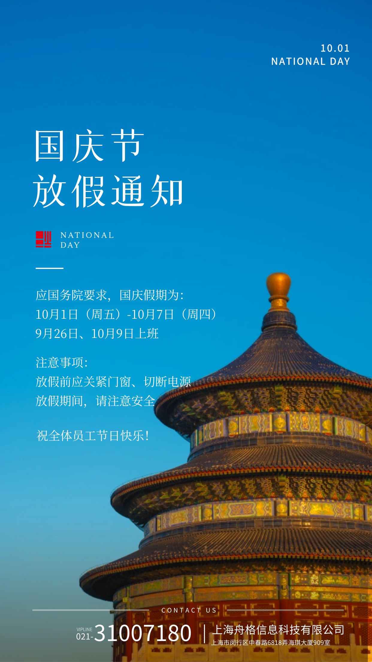 值此國慶、中秋雙節到來之際,為了便于大家對這個黃金假期做合理的活動安排,現根據國家相關規定結合公司的實際運營情況,特將國慶放假時間在此公布,具體安排如下: