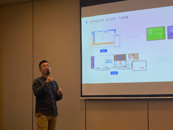 飛書技術經理杜玨飛在主題演講中,傳遞了飛書的協作能力,也發布了飛書適配的Poly系列硬件外設(如Calisto3200、Cube、Studio、Trio8800等),及認證計劃。