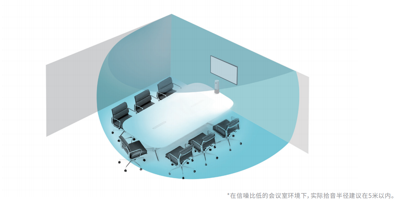 *在信噪比低的會(huì)議室環(huán)境下,實(shí)際拾音半徑建議在5米以內(nèi)。