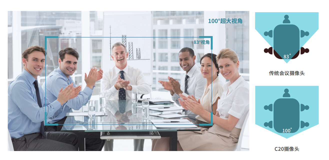 Hamedal?C20采用專業(yè)化定制的100°水平大廣角無(wú)畸變鏡頭,使得每個(gè)與會(huì)人員都清晰可見(jiàn)。開(kāi)闊的視野能夠真實(shí)還原會(huì)議場(chǎng)景,配合1080P全高清畫(huà)質(zhì)輸出,清晰銳利的圖像顯示讓與會(huì)人的表情、動(dòng)作傳達(dá)更加精細(xì)入微,遠(yuǎn)程會(huì)議如同面對(duì)面。?